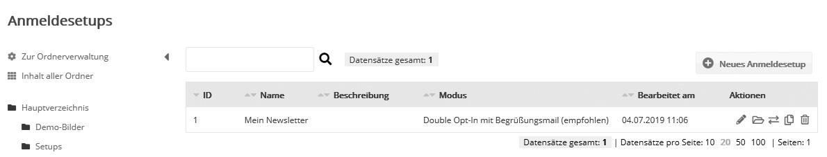 Sollten Sie ein Anmeldesetup in einen Unterordner verschoben haben, gelangen Sie an diese Stelle per 'Ordner öffnen'. Vorbereitungen für ein funktionierendes AnmeldesetupLegen Sie in MAILINGWORK zunächst alle Zutaten an, die später im Anmeldesetup verwendet werden: